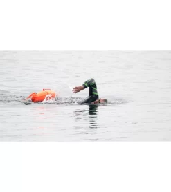 A high visibility inflatable dry bag perfect for keeping your kit dry while you swim. All our inflatable dry bags will easily support an adult’s weight if you need to rest. The 28L (6 gal) Dry Bag has enough space for your standard kit- towel, shoes, and clothes. The high flow nozzles inflate external chambers which are separate from where your kit is stored. It has a twin handle design with two nozzles for inflating and deflating.