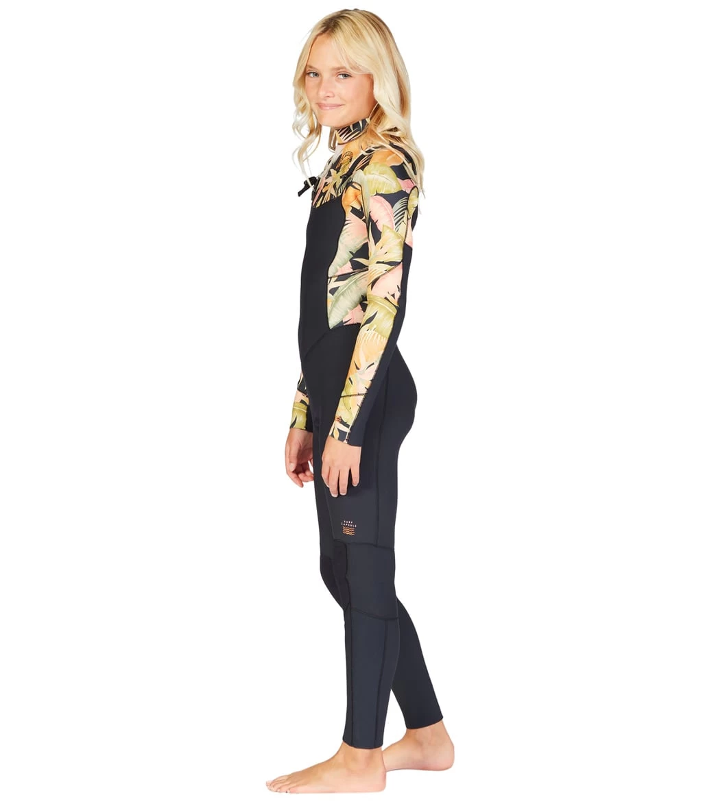 Stand out in the line-up with signature style and progressive performance. Equipped with Billabong wetsuit technology, including a chest zip and Graphene Recycler thermal lining at the internal chest and back panels, combined with silicon stretch lining at the lower legs and sleeves, the Surf Capsule Collection women’s full suit is customized with palm printed panels. Combining style, performance and sustainability, the Billabong Girls’ 4/3 mm Teen Salty Dayz Chest Zip Fullsuit Wetsuit is now made with stretchy and eco-conscious Superlight neoprene and water-based adhesives.