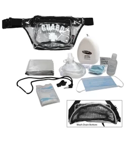 The Kemp USA Hip Packs are made to withstand the rigorous use of EMS professionals and guards in the field. This Kemp USA Hip Pack is made of durable clear PVC plastic and has a mesh bottom for easy drainage and faster drying. It includes a heavy-duty adjustable 45″ waist strap. Has a white GUARD logo on the front.