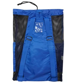 The Sporti Equipment Mesh Backpack is a large bag loaded with useful compartments that will hold your swim gear and keep you organized.