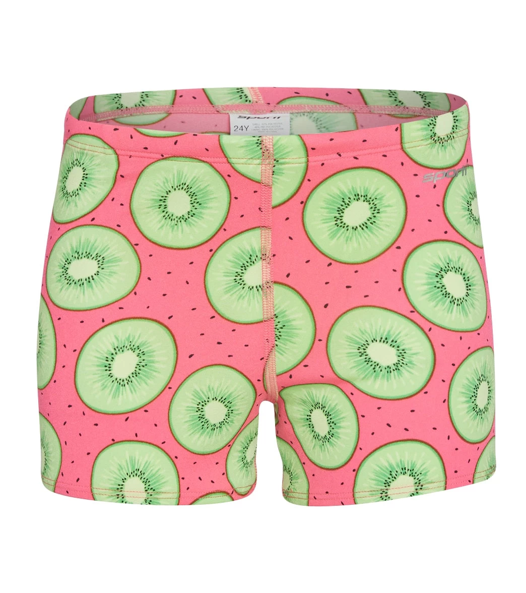 Add a pop of color to your swim with the Sporti HydroLast Love Kiwi Square Leg Swimsuit Youth (22-28).