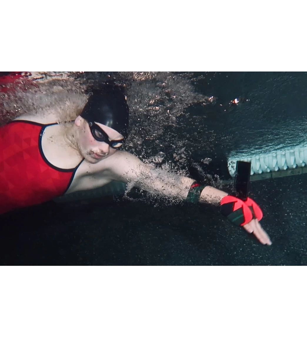 - Fins flex to allow normal flip turns, standing, etc.