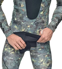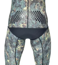The Seac USA Men’s Pirana Two Piece Camo Hooded Wetsuit is made with polyurethane (PU) on knees, elbows and lower back, and 7.0 mm chest guard in Supratex nylon 2 neoprene, to keep you protected while you’re hiding between rocks. This camouflage pattern is in green, yellow and brown tones for stealth when on the hunt. This is the perfect suit design for spearfishing.Â