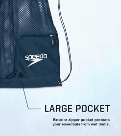 Easily carry all your swim essentials from the pool to the car with the durable and convenient Speedo Ventilator Mesh Bag. The ventilated mesh construction allows for optimal drainage and breathability to help your gear dry faster.