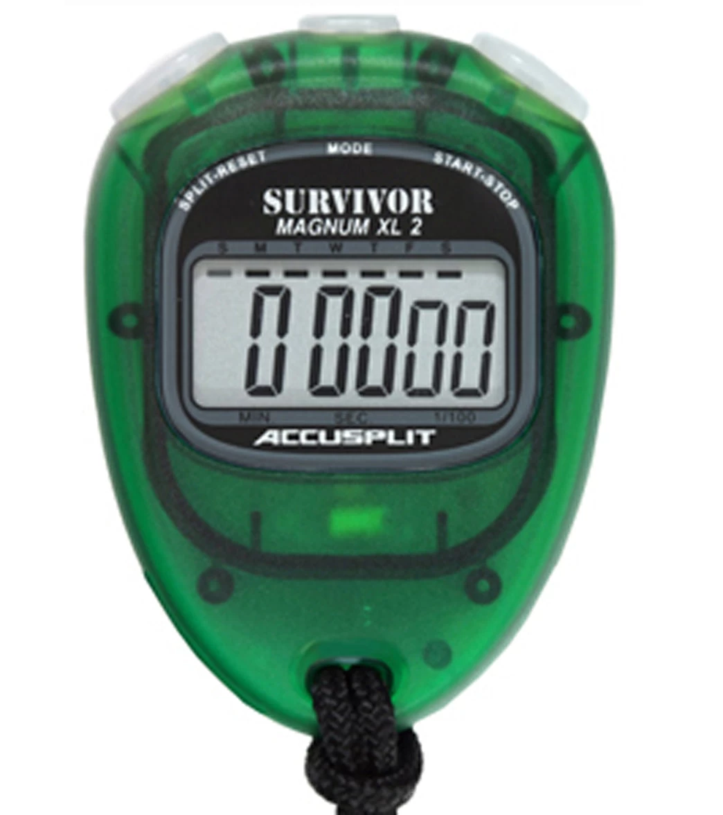 Get industry-standard performance and a larger display with the Accusplit SX Survivor Series Translucent Stopwatch. Redesigned in a new SX case featuring micro switches and a Magnum XL display, the battery has also been upgraded to provide 5 years of battery life. Each Survivor model still has economical features and functions designed to give you professional timing in an affordable manner.