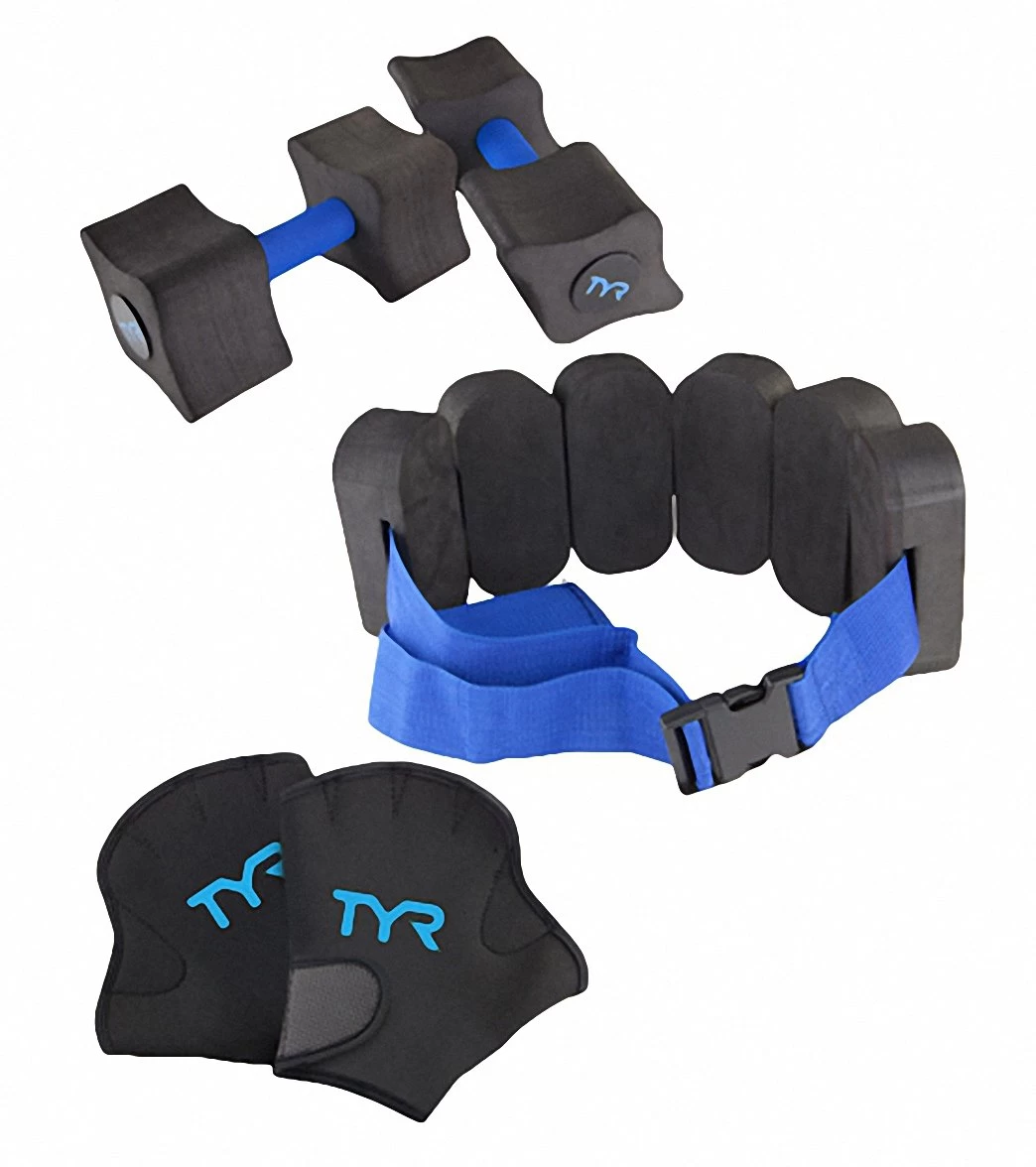 Get everything you need to achieve your water fitness goals with the TYR Aquatic Fitness Kit.